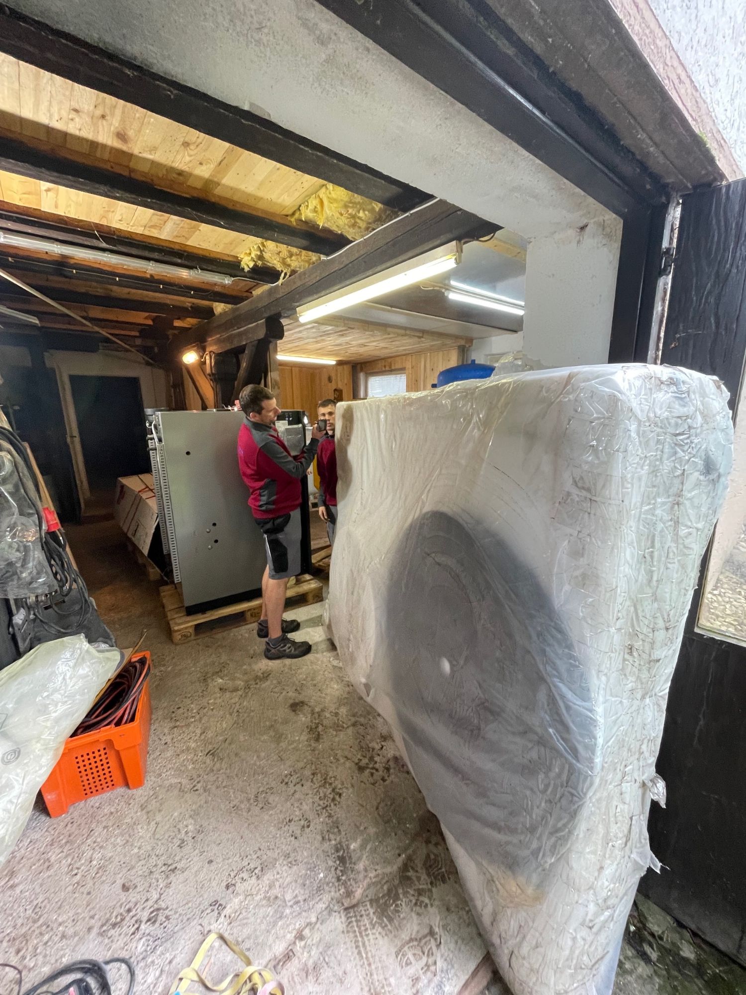 Nach der Bewilligung begann der Heizungsumbau mit der Demontage des alten Holzofens und der Installation einer hochmodernen Holz–Pellets–Kombination von ETA bestehend aus