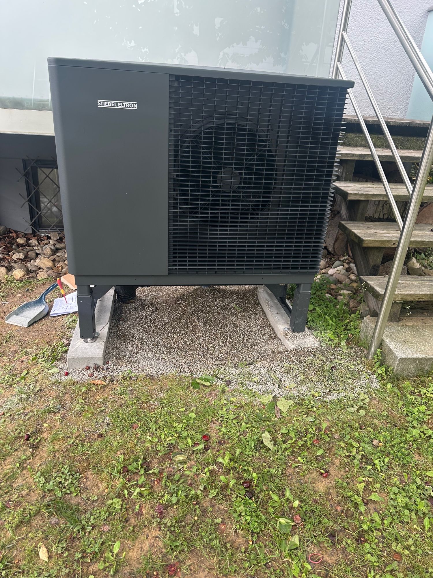 Das Fundament für das Außengerät wurde vom Bauherrn in Eigenleistung erstellt. Anschließend erfolgte durch unser Team die Installation einer Stiebel Eltron Luft-Wasser-Wärmepumpe WPL-A 07.2 Plus HK 230 mit umweltfreundlichem Kältemittel Propan (R290) und einer Heizleistung von 10 kW.