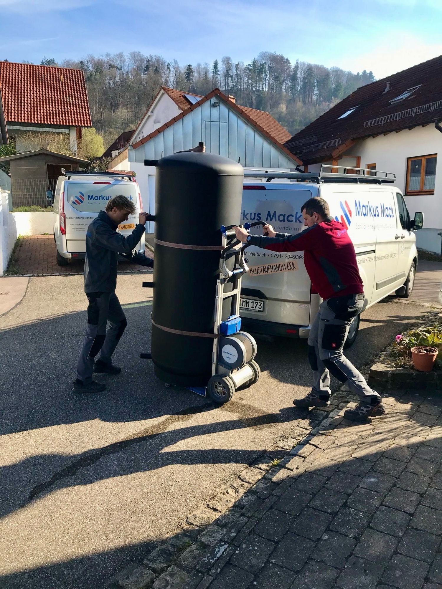 Ein elektrischer Heizstab im Pufferspeicher sorgt dafür, dass der Kunde bereits am ersten Tag nach der Montage wieder über warmes Wasser verfügt – ohne lange Wartezeit auf die vollständige Inbetriebnahme.