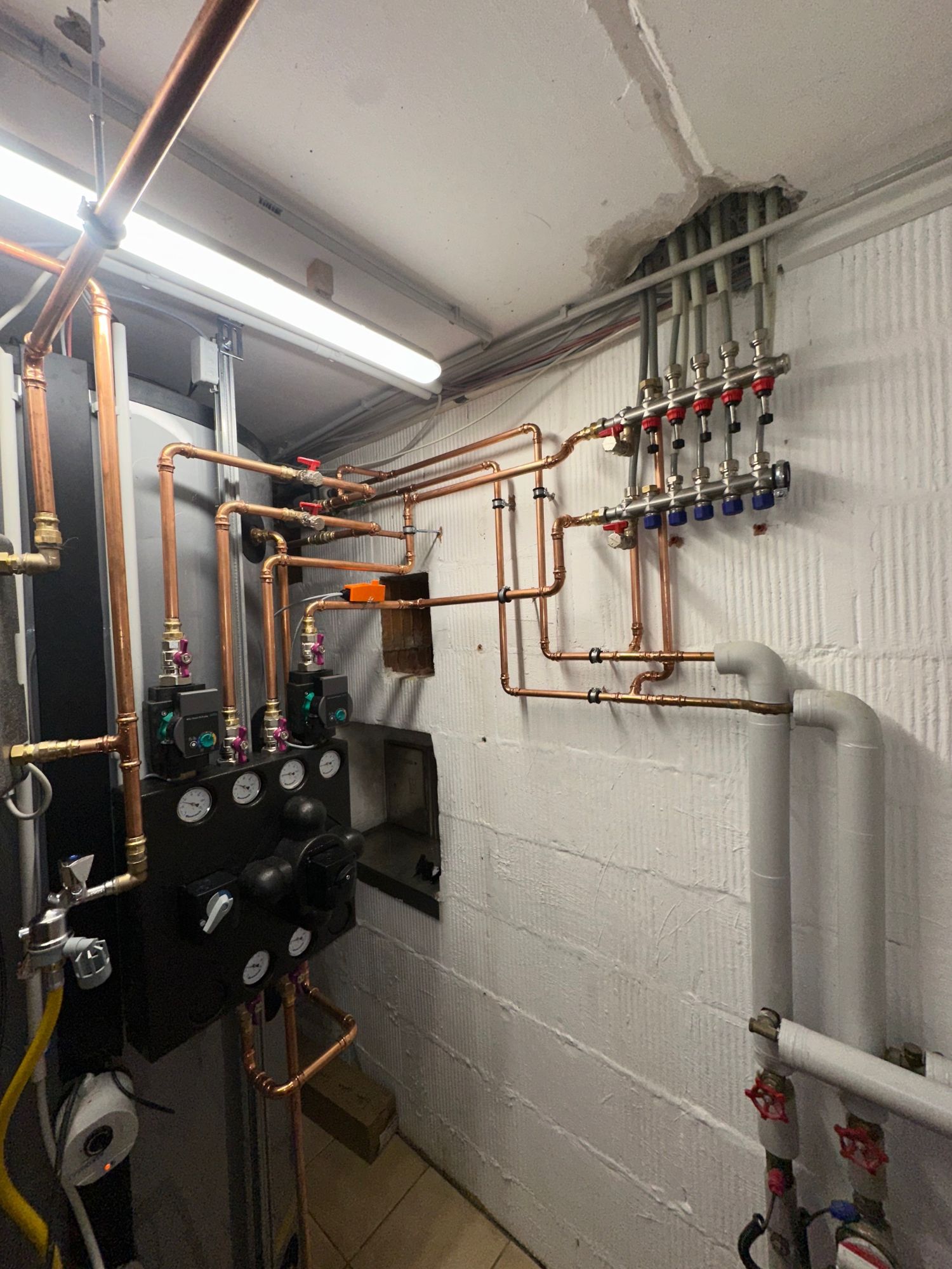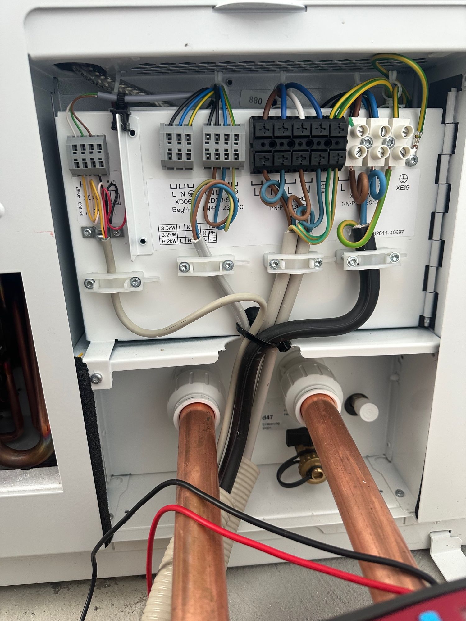 Die Außeneinheit der Wärmepumpe wurde auf dem vorbereiteten Sockel aufgestellt und mit den Innenkomponenten hydraulisch verbunden. Sämtliche Rohrleitungen wurden fachgerecht verlegt, isoliert und auf Effizienz geprüft.